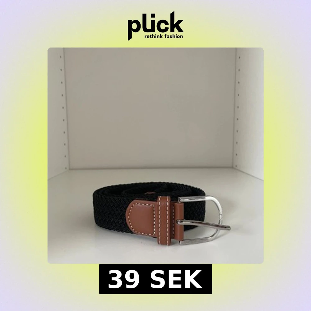 Snyggt svart flätat bälte med bruna skinn-detaljer och silverspänne. Perfekt accessoar för att lyfta din outfit. Bältet har klassisk design med kontrastsömmar på skinnet och passar till många olika stilar. Bältet är 110cm