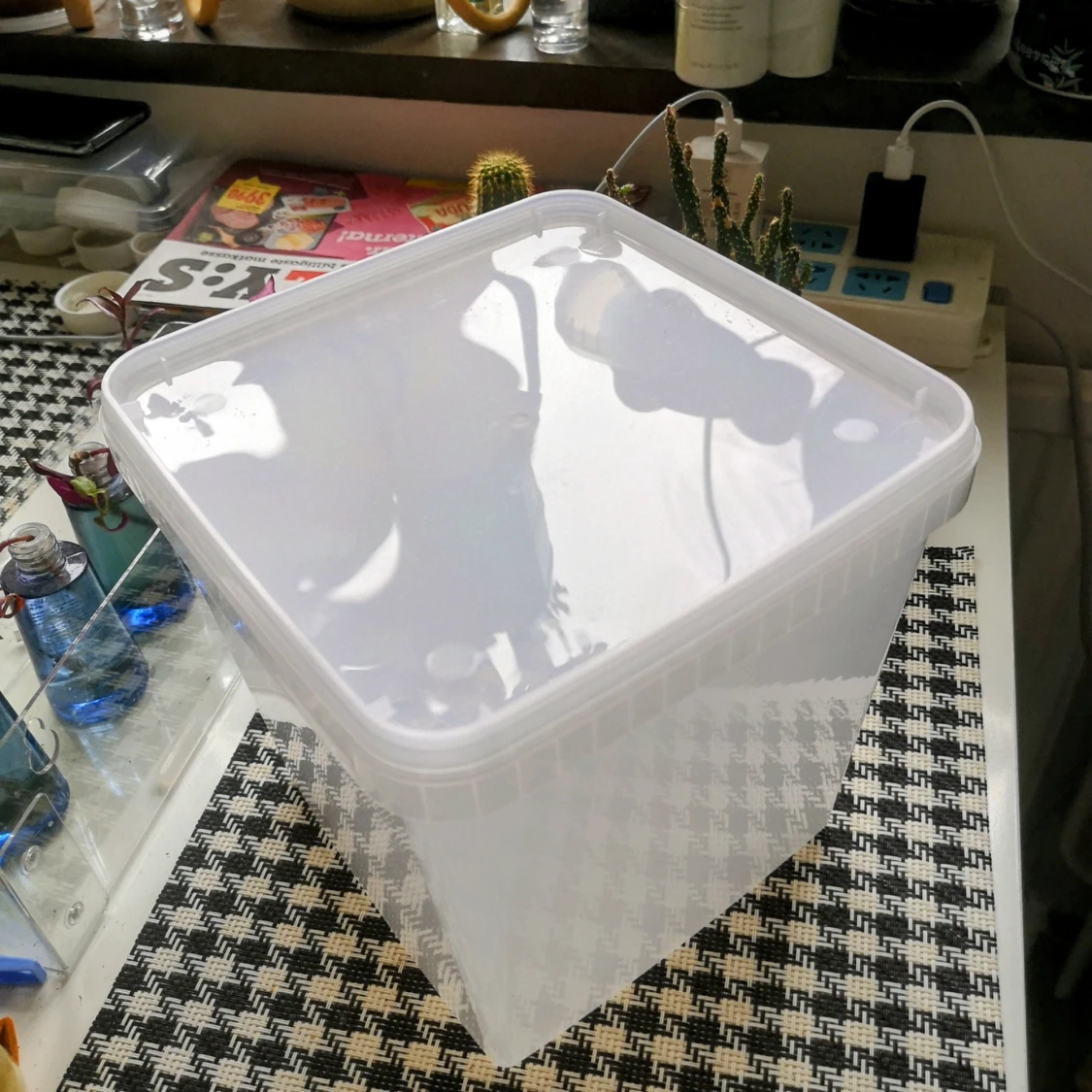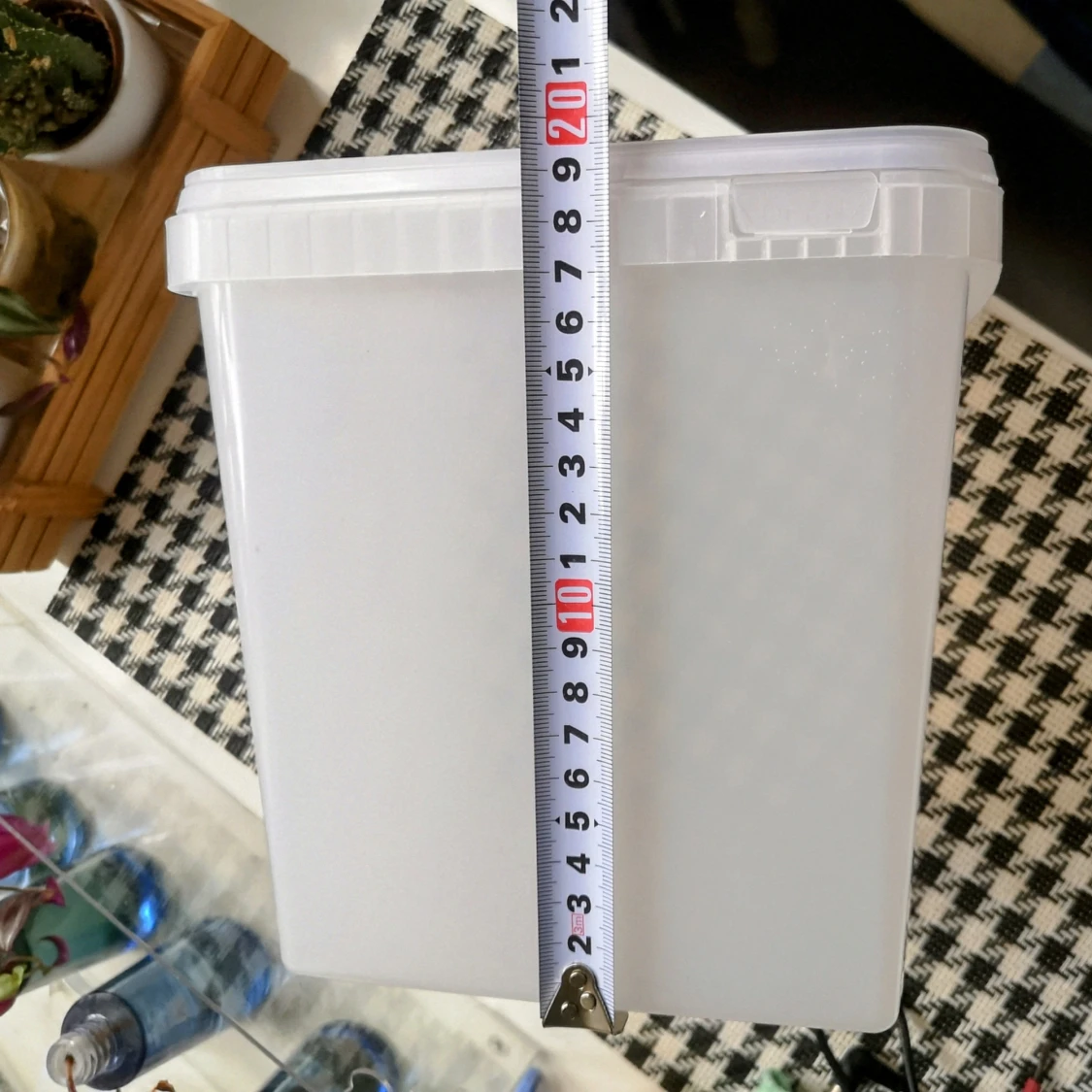 Mått 19x19x19cm. Godkänd för kontakt med livsmedel, hela, fina och rena, kan används som planteringskrukor, 5 liter med lock. Kan hämtas i Norra Stockholm.