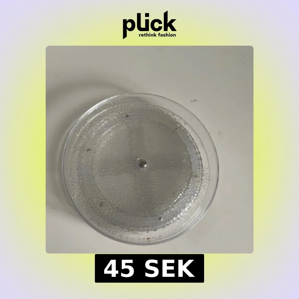 Transparent rund plastbricka med snurrfunktion, troligen en Lazy Susan för ex smink, kök eller förvaring. Produkten är i perfekt skick som ny. Perfekt för att organisera kryddor eller andra småsaker.