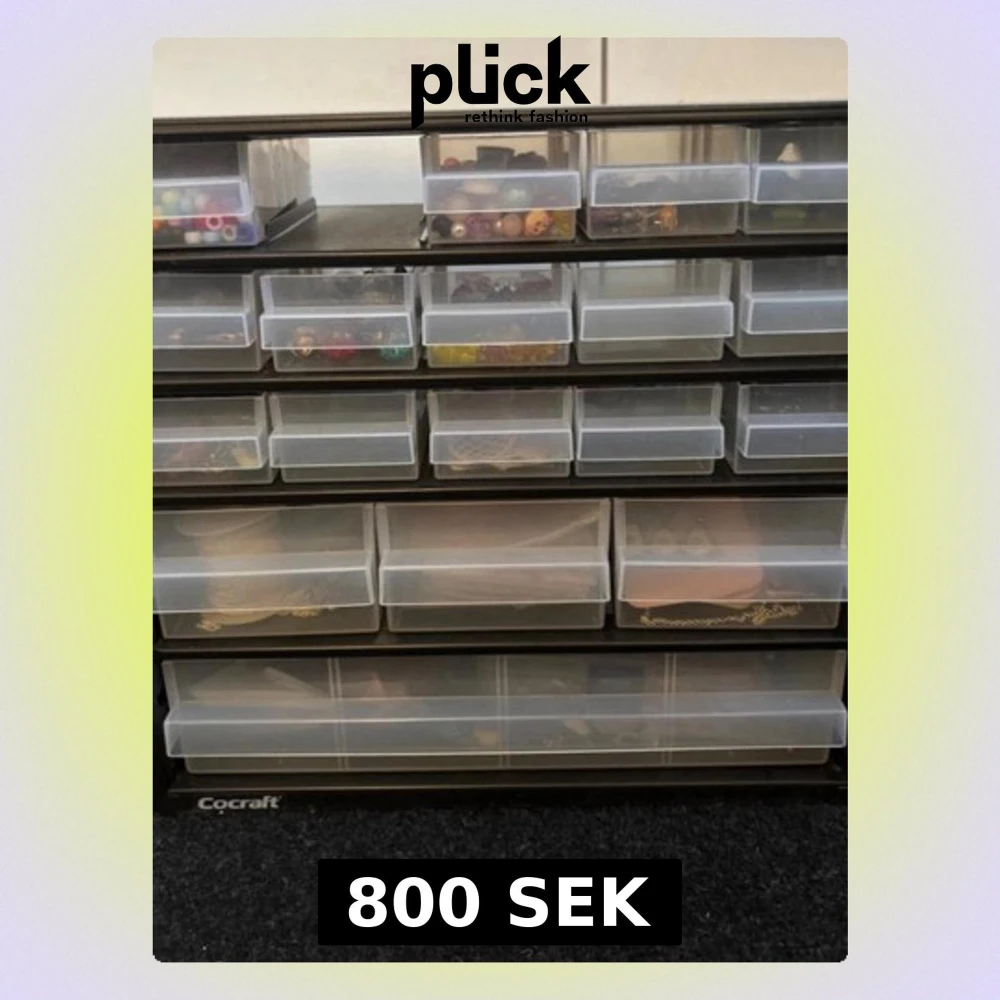 Förvaring med 18 lådor. I lådorna ligger berlocker och andra saker man behöver för att själv kunna tillverka smycken. Säljer då jag hade en egne small business för nått år sen men använder inte de längre. Perfekt nu till julklapp.