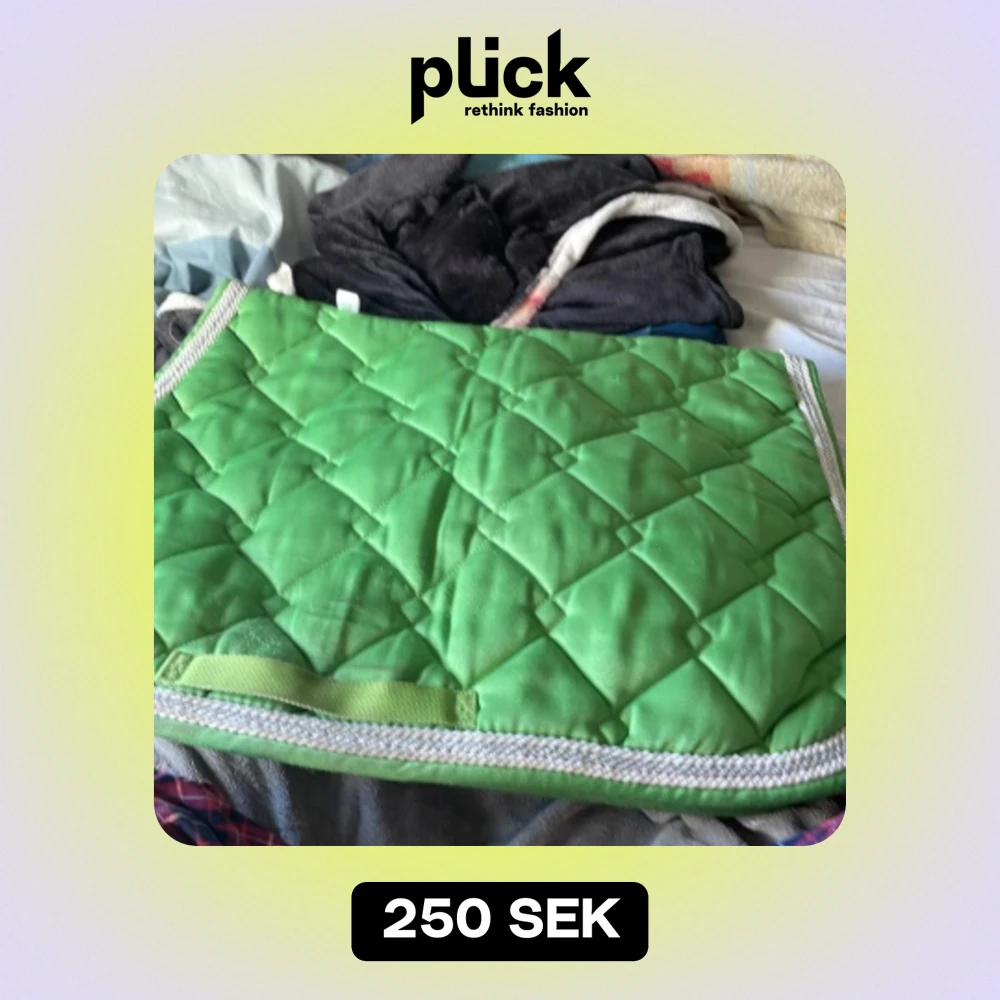 Hej! Jag säljer mitt gröna schabrak i storlek full. Nästan aldrig använt. Har ett litet skav på kanten från sadeln.