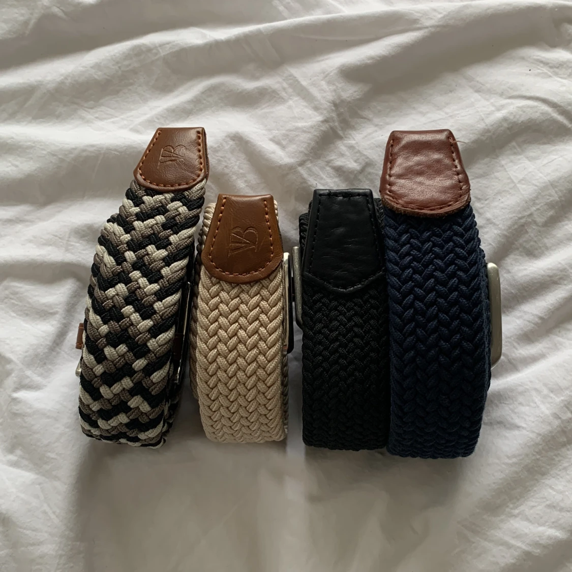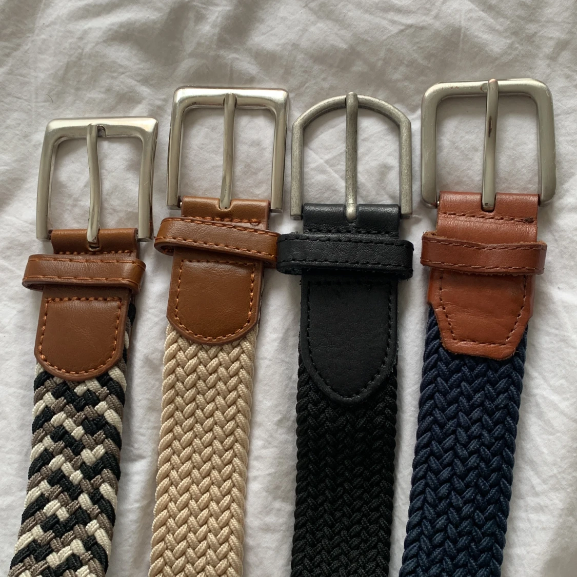 Säljer fyra snygga flätade bälten i olika färger beige, svart, blå och ett med svartvitt mönster. 59 styck, 99 för 2 och alla 4 för 159. Ny pris på alla 125 kr. Vädligt bra erbjudande!