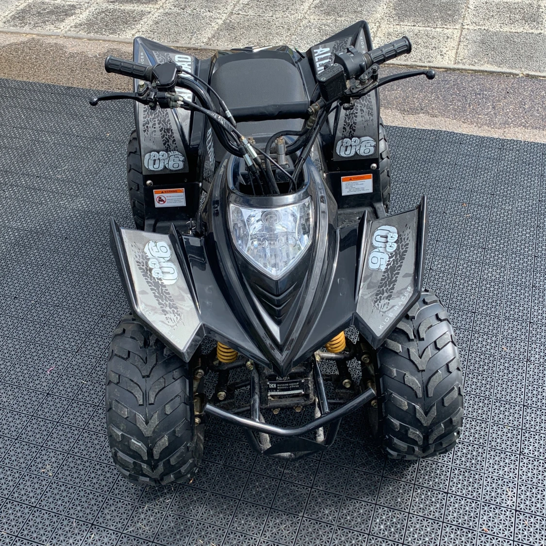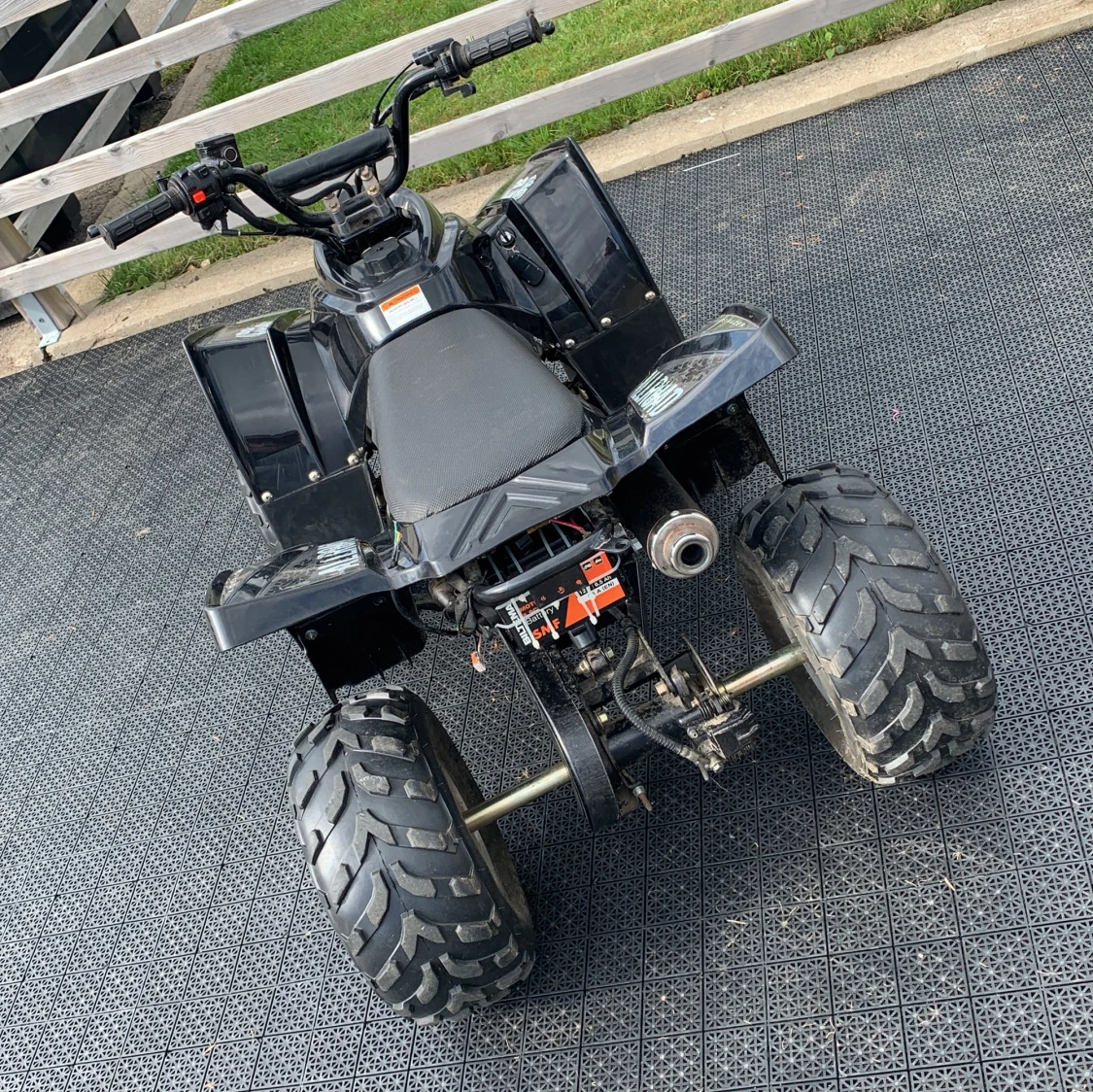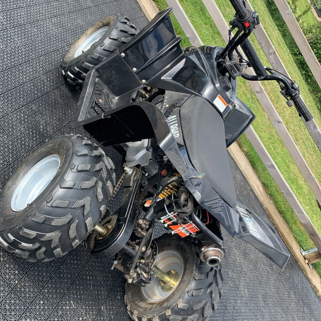 Säljer min fyrhjuling 90 cc går bra i motor.den är 1 växlad .lyse,tuta och bromsar funkar också bra.max fart runt 40 kmh men kan sänkas för yngre barn.ny cdi box,körd 25 timmar.den finns i Tingsryd, skicka till mig för adress.