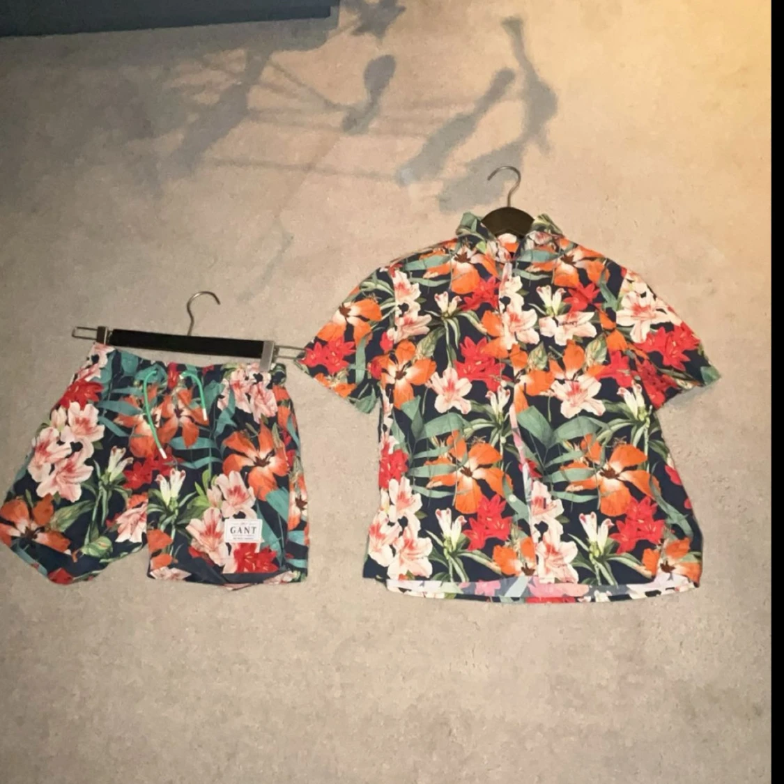 Snygga blommiga badbyxor från Gant med ett färgglatt mönster i orange, röd och grönt. Perfekta för sommarens äventyr. Shortsen har en bekväm passform och snörning i midjan för justerbarhet.
