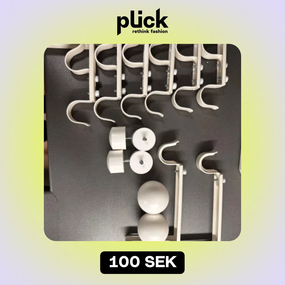 Vägg/tak fästen till gardiner med tillhörande ändknoppar. 3par dubbla och ett par enkla. Alla knoppar finns med. Nypris 240kr