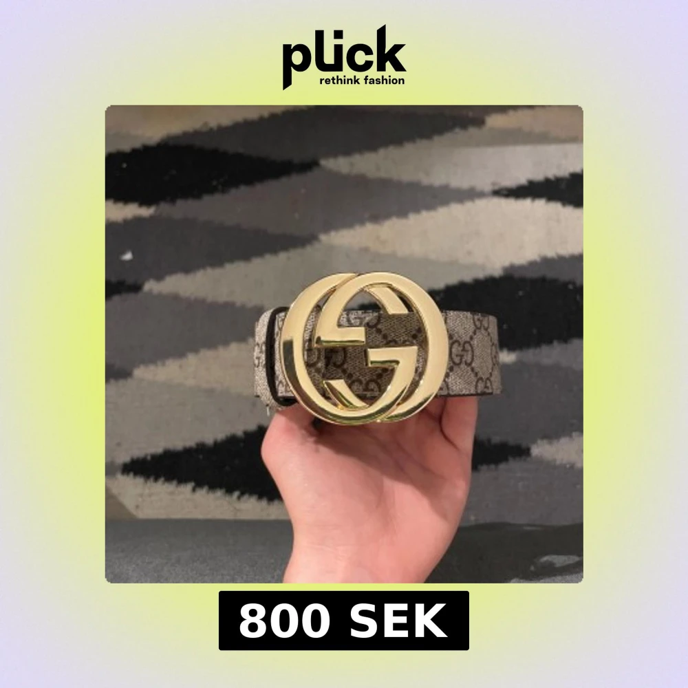Säljer GG Supreme bälte med ikoniskt stort guldspänne. Bältet har klassiskt GG-mönster i beige och brunt, tillverkat i skinn med canvasdetaljer. Perfekt för dig som vill ha en statement-accessoar med lyxig känsla.