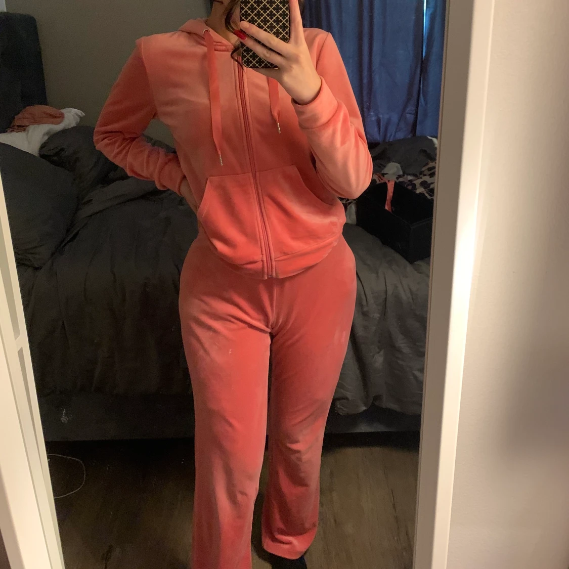 Mörkros mjukisdress, byxor använda men tröjan bara använd få gång.som nya