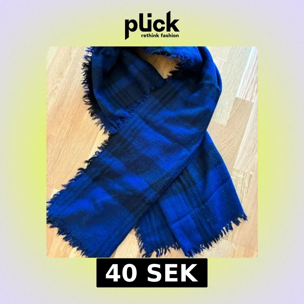 Halsduk från Gina Tricot i blått och svart rutigt mönster. Halsduken har fransade kanter och är tillverkad i 100% akryl. Perfekt att svepa runt sig när det är kallt ute. Från djur-rök och parfymfritt hem.