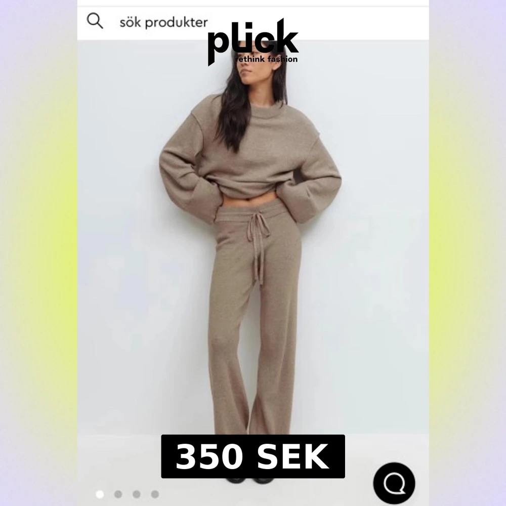 Säljer ett beige mjukissätt ifrån Gina. Byxorna är i storlek M och tröjan i storlek S. Köpte för 650 och säljer för 350