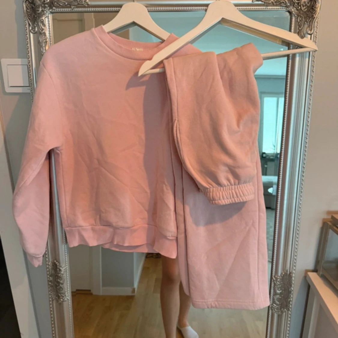 Använt men inga hål eller liknande, aningens urtvättade i färgen. Fläck på baksidan av mjukisbyxorna.