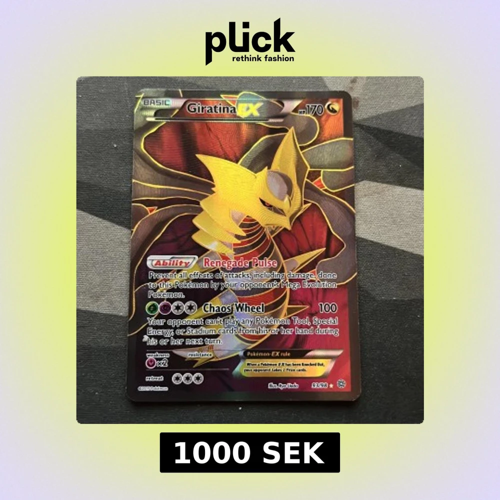 Cool Giratina EX Pokémonkort med häftig foil och starka attacker! Perfekt för samlare och dig som vill boosta din lek med en legendarisk Pokémon. Kortet är i bra skick och passar både nya och erfarna spelare.
