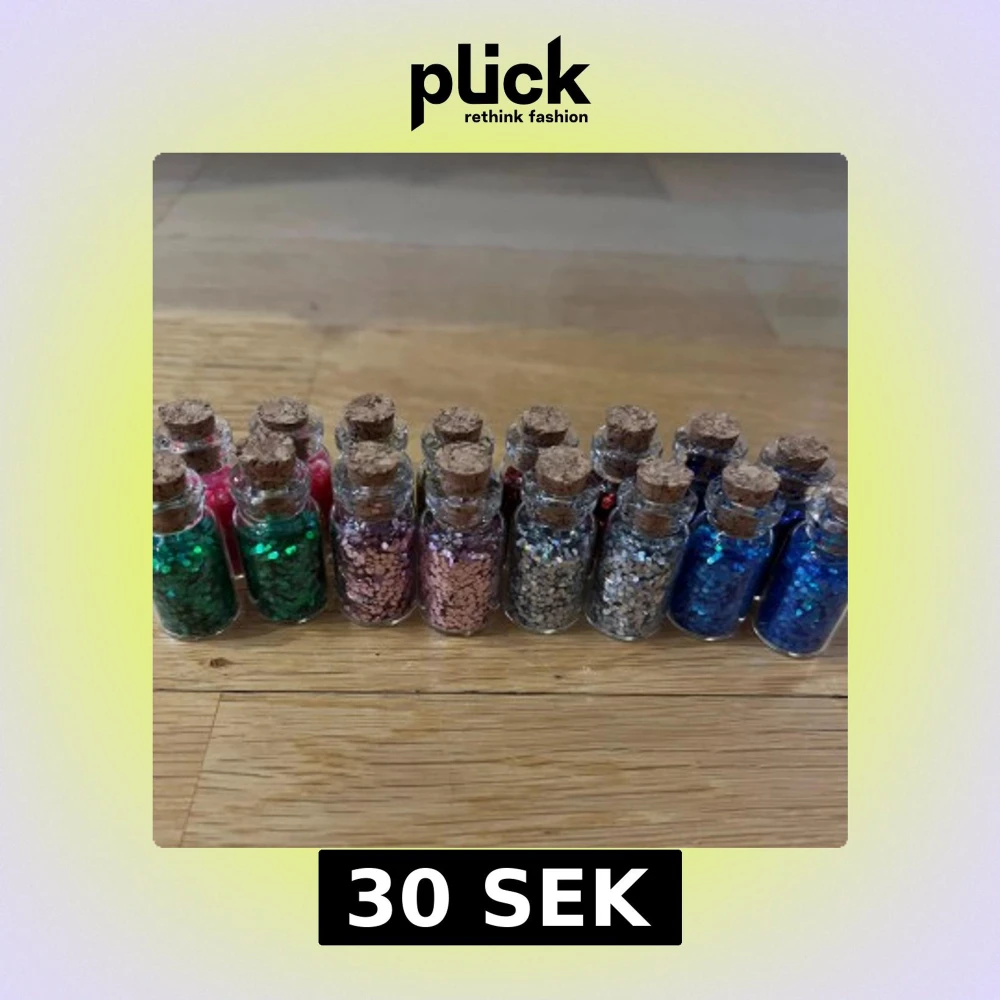 Glitter i små flaskor! 16 stycken i färgerna: grön, rosa, silver, ljusblå, mörkblå, röd, guld och mörkare rosa. Oanvända!