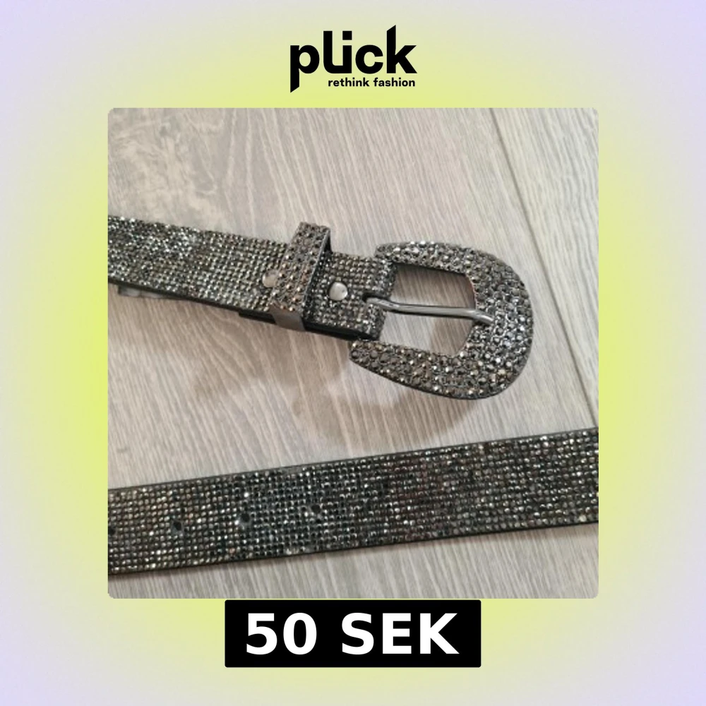 Svartsilvrigt rhinestone bälte, från spännet till slut är det 120 cm. Några stenar lite slitna men inget som märks. Kolla in mina andra saker jag säljer!