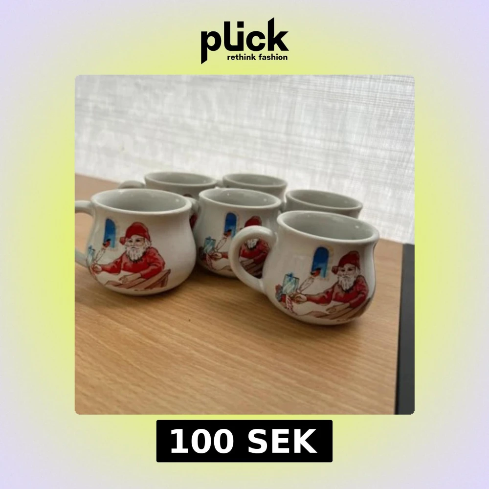 6 st glöggmuggar med fint julmotiv av tomte. I fint skick