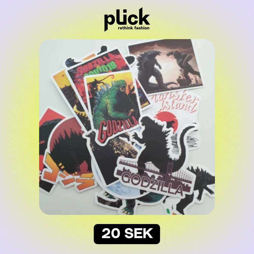 Klistermärken/stickers, Motiv: Godzilla ,Antal: 16st Skick: ny/oanvänd, Kul att använda till pyssel, scrapbooking och annat. Kan tex användas till att dekorera din bärbara dator, skateboard, resväska, etc.