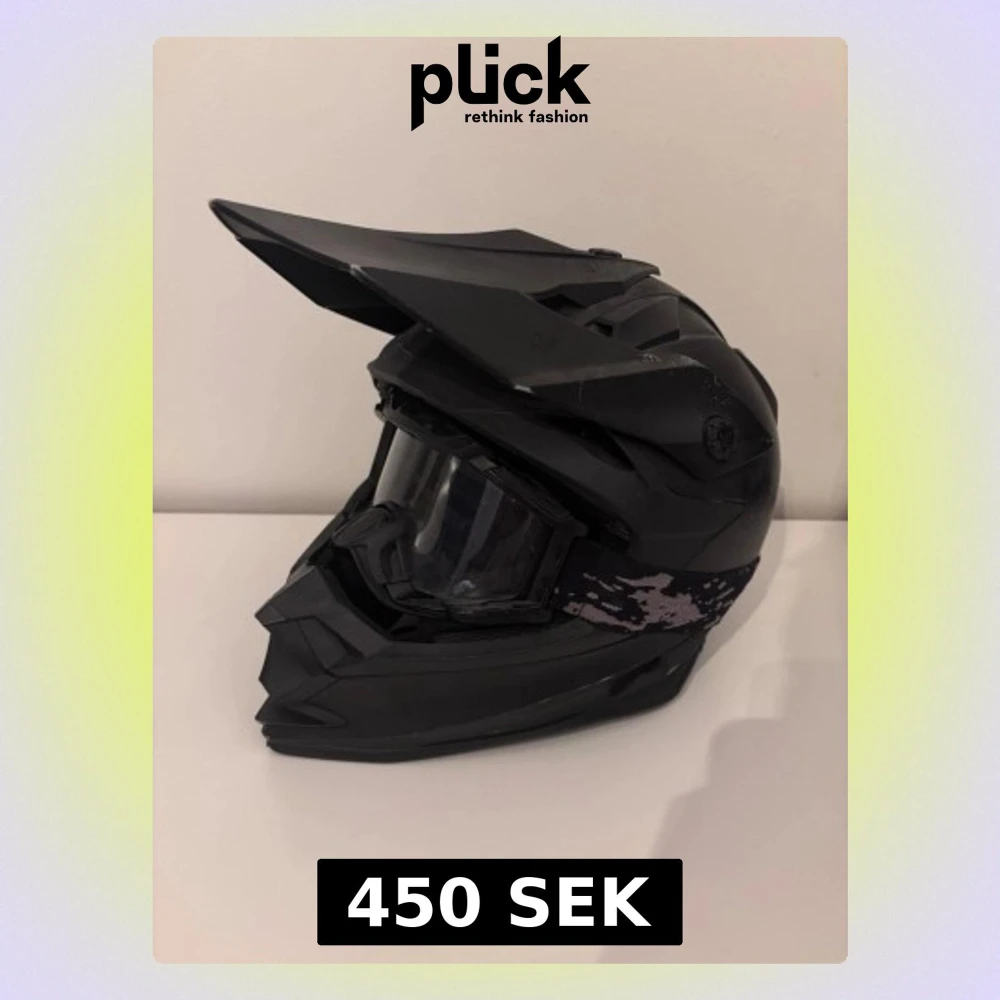 Säljer nu min cross/mopedhjälm med tillhörande goggles. Hjälmen har lite små defekter och skrubbsår. Se bild 3/4. Storlek: M 57-58cm