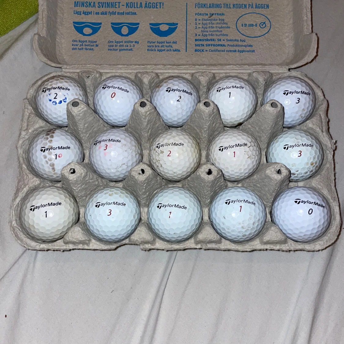En äggkartong fylld med TaylorMade bollar, många olika modeller som tex RBZ. Är i bra skick och behövs en ny ägare! Dm för frågor.