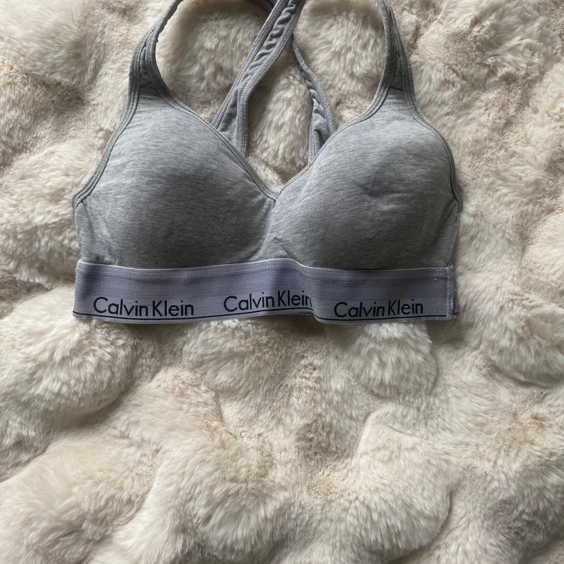 Säljer en grå bh från Calvin Klein med bred resår och logga runt om. Tillverkad i bomullsmix för extra komfort. Köpt för 300 kr