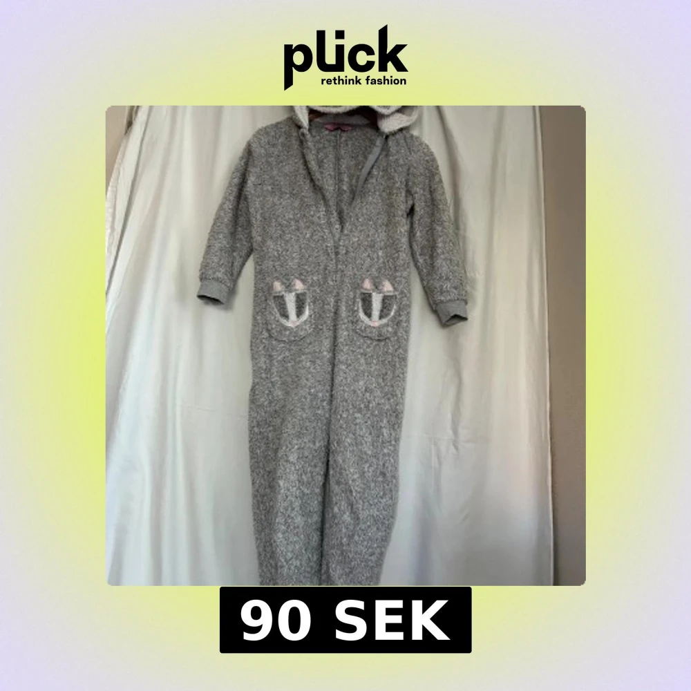 Supermysig grå onesie från Hunkemöller med huva som har broderat kattansikte och öron. Fickor framtill med söta detaljer och dragkedja. Perfekt för chilliga dagar hemma eller sleepovers.