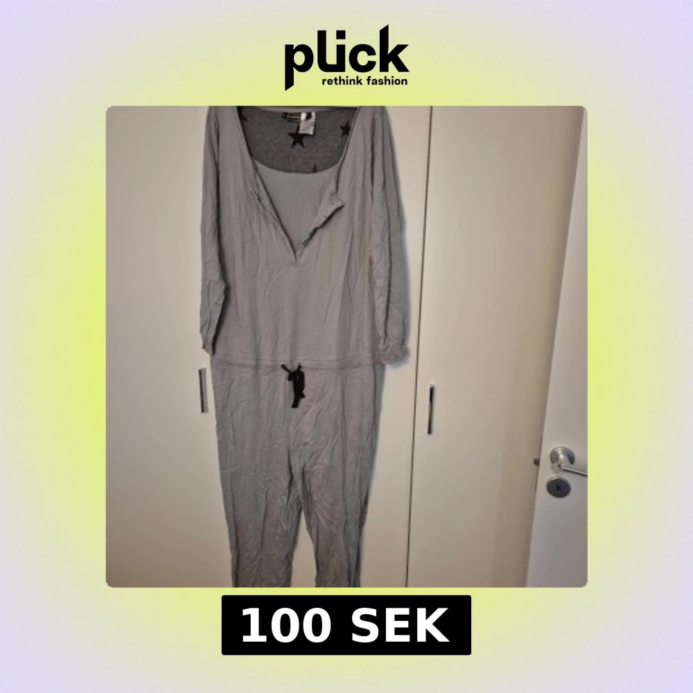 Grå jumpsuit från Rainbow i 100% bomull med långa ärmar, knappar framtill och snörning i midjan. Mjuk och skön, perfekt för chill dagar. Stjärnmönster på insidan av kragen ger en extra touch.