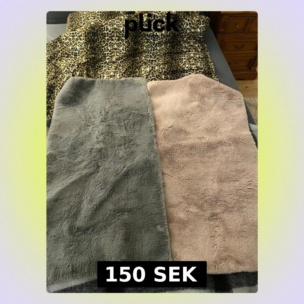 Två mjuka och fluffiga mindre mattor. Använt vid sängen. En grå och en rosa. Tvättade i parfymfritt men hund finns i hemmet.