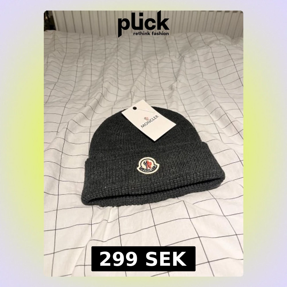 Snygg grå mössa från Moncler med ribbad stickning och uppvikt kant. Framtill sitter Monclers klassiska logotyp i vitt och rött. Perfekt för dig som vill ha en clean och stilren look under kalla dagar.