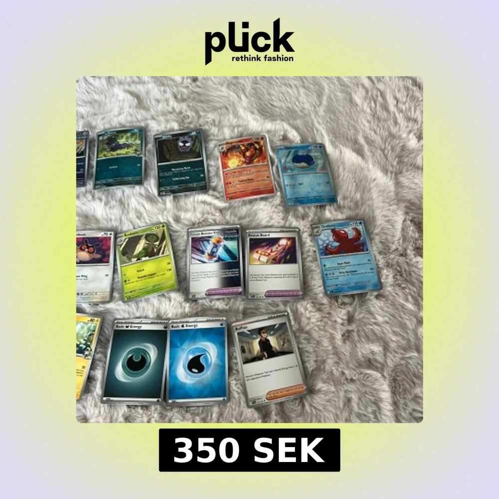 Säljer en blandad samling Pokémonkort med både vanliga och holografiska kort. Innehåller flera olika Pokémon, energikort och tränarkort. Flera kort har färgstarka illustrationer och vissa är V-kort med högre HP. Perfekt för samlare eller Pokémon-fans som vill utöka sin samling.