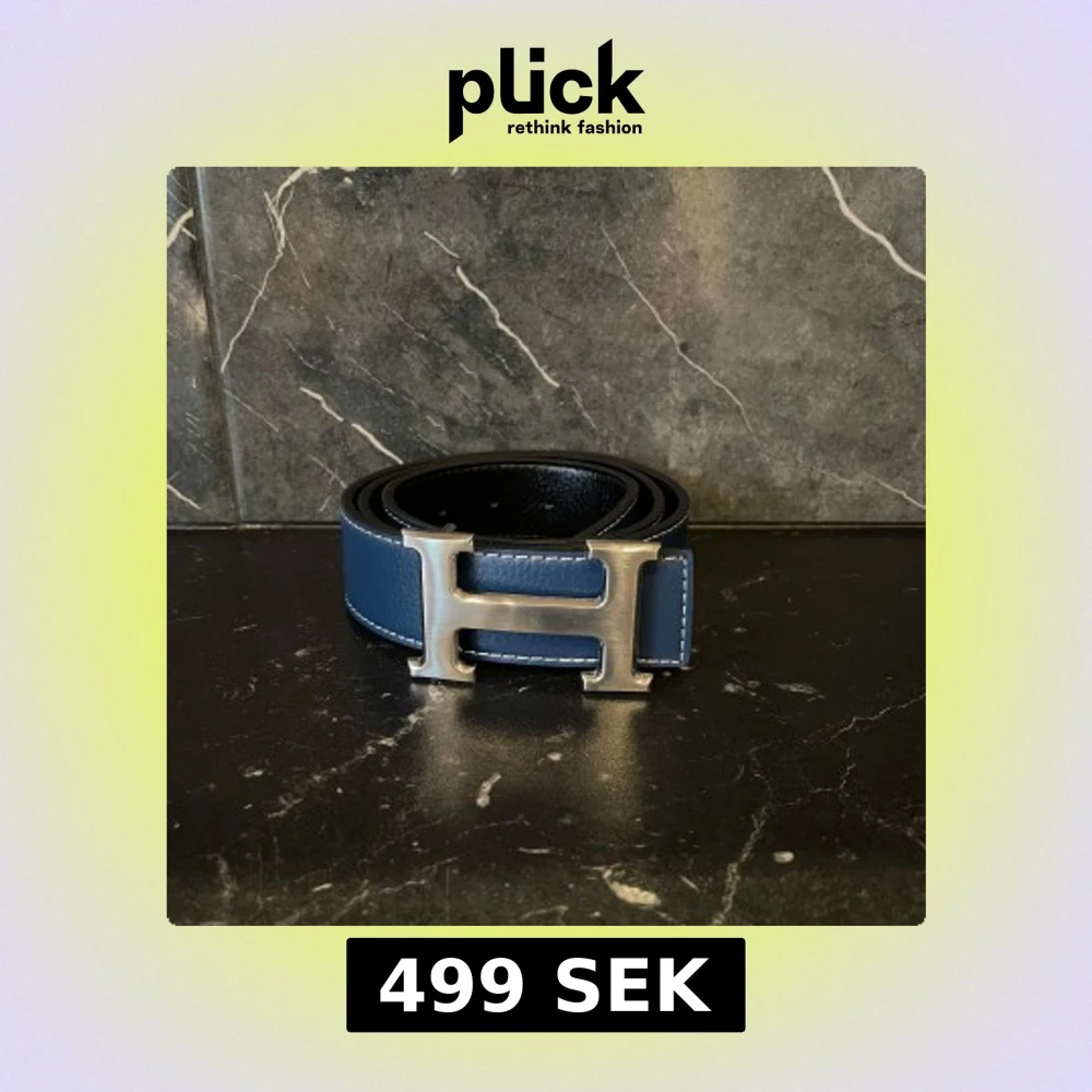 Snyggt blått bälte med ett stort H-format spänne i silver. Perfekt för att ge en stilren touch till din outfit. Tillverkat i skinn med kontrasterande sömmar.