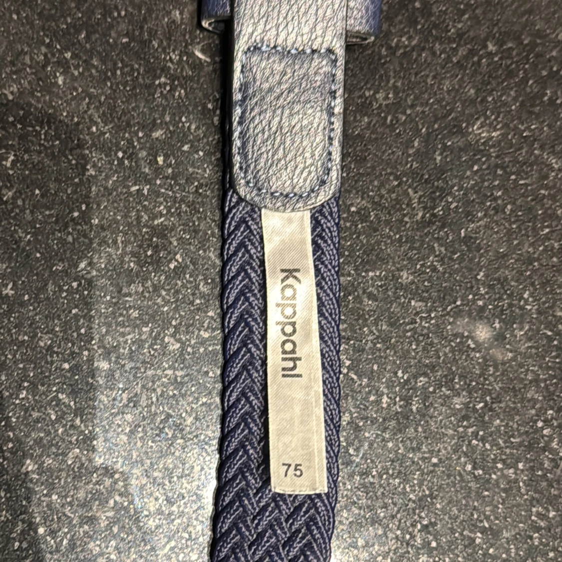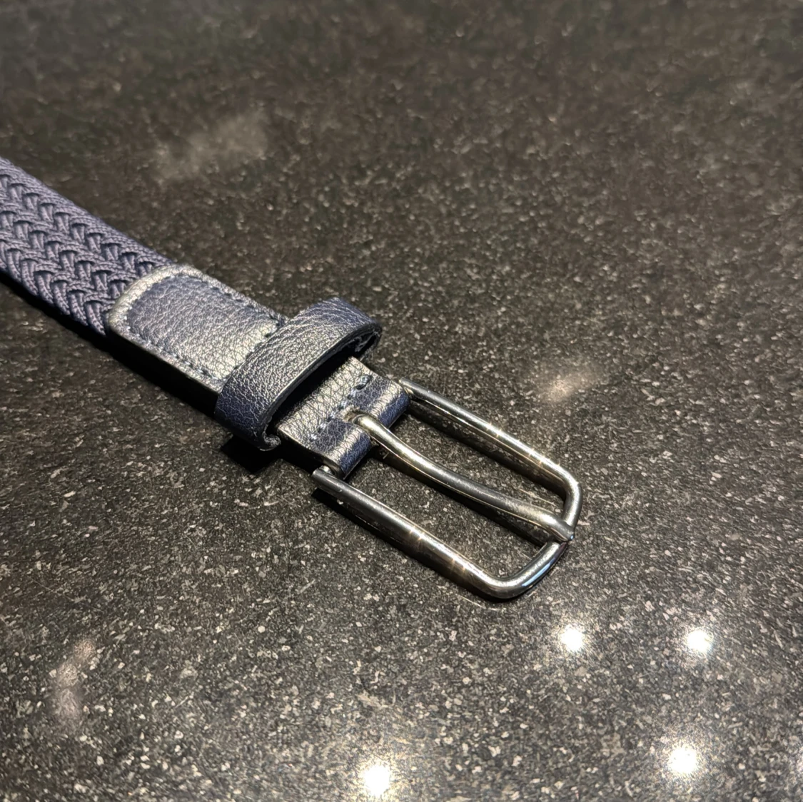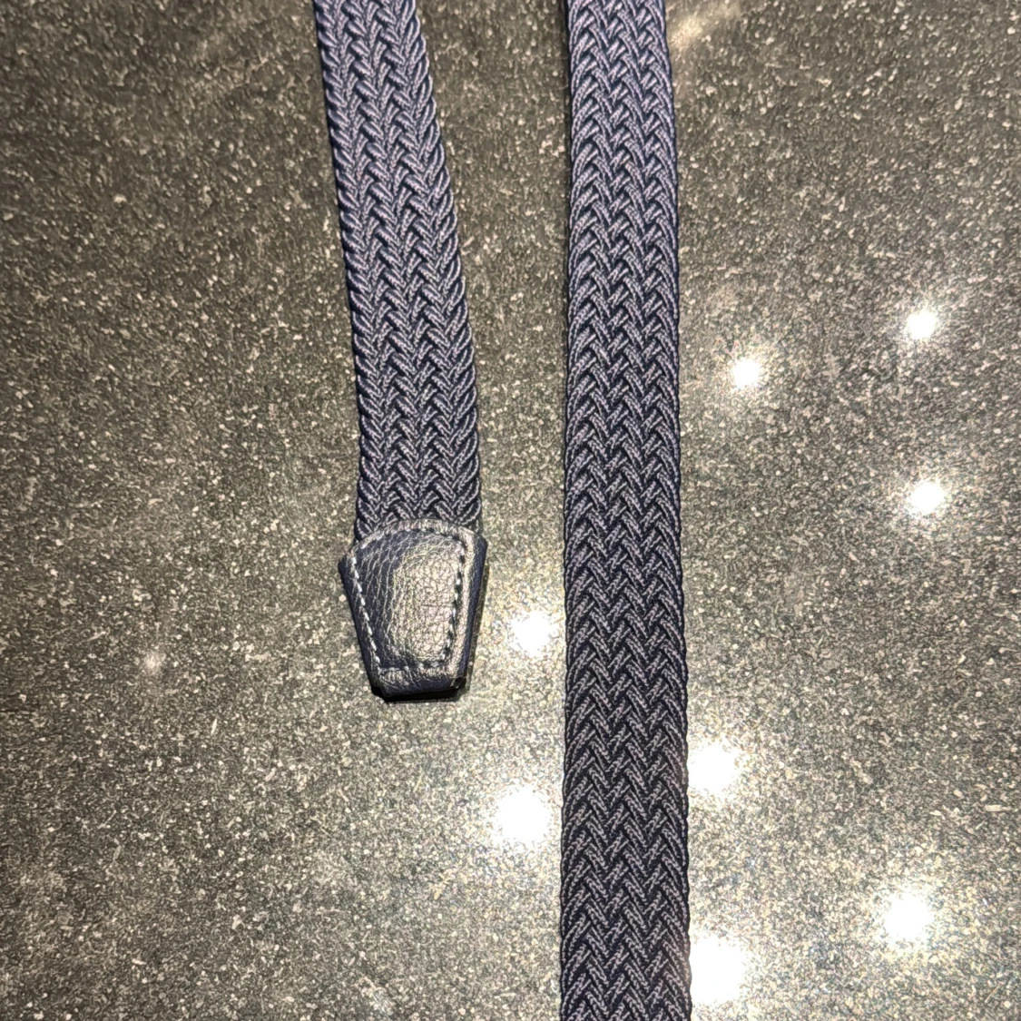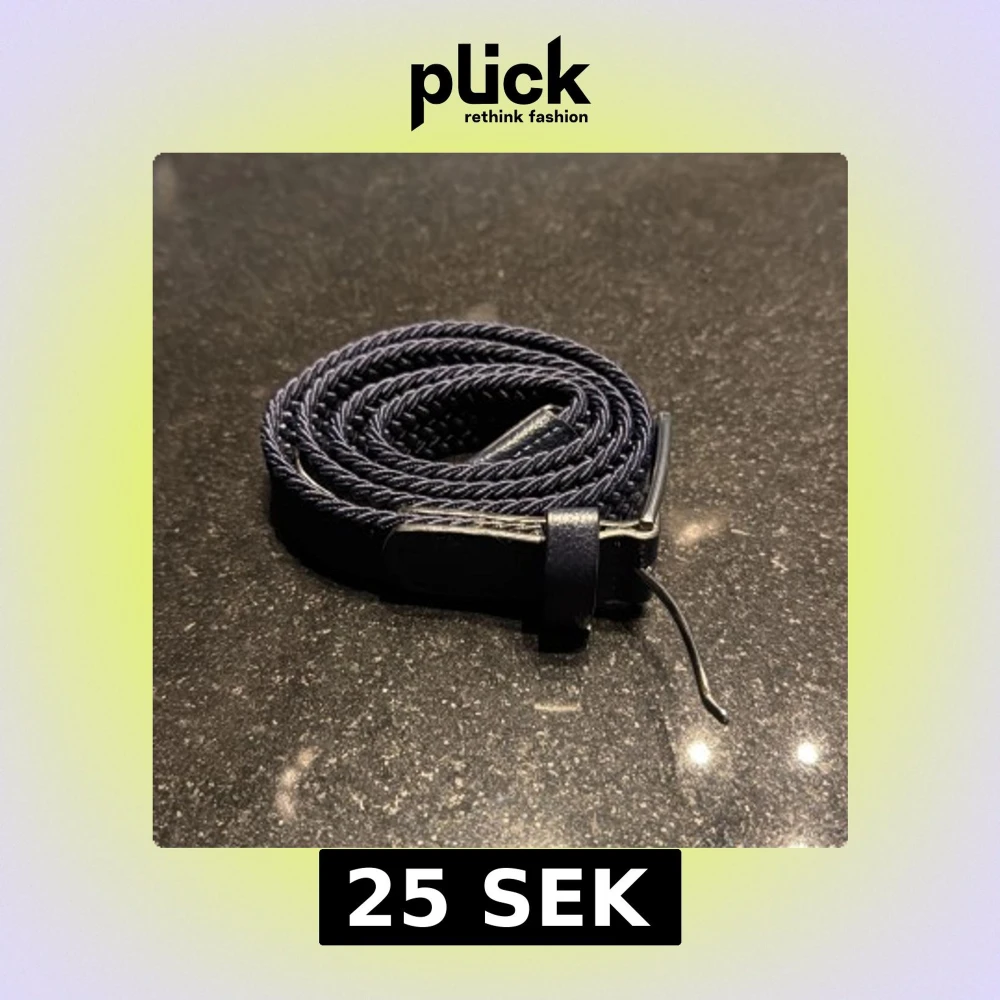 Snyggt mörkblått bälte från Kappahl med flätad design och detaljer i skinn. Bältet har en klassisk silverfärgad metallspänne och är smalt, vilket gör det lätt att styla till olika outfits. Perfekt för dig som gillar stilrena accessoarer.