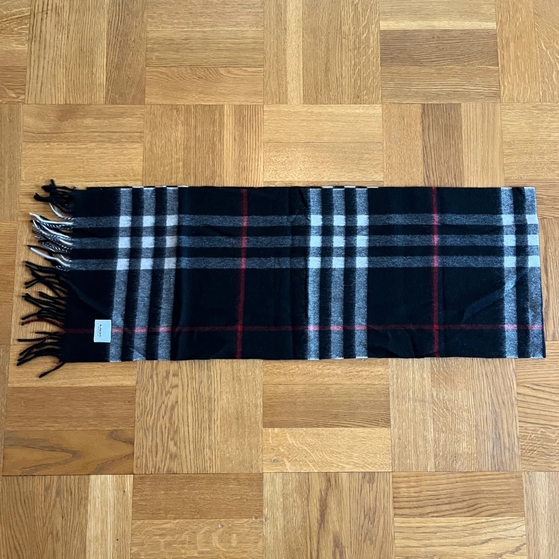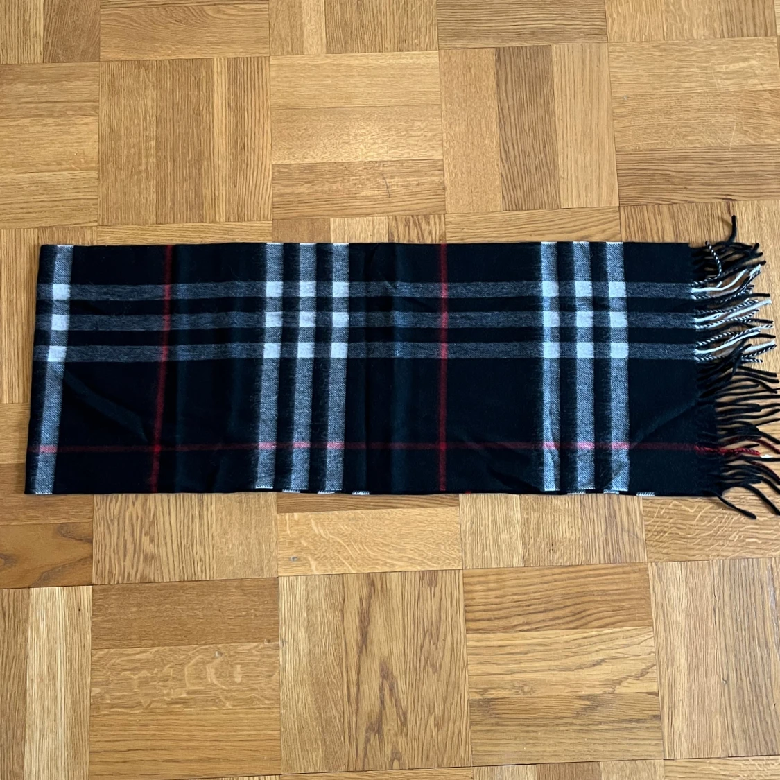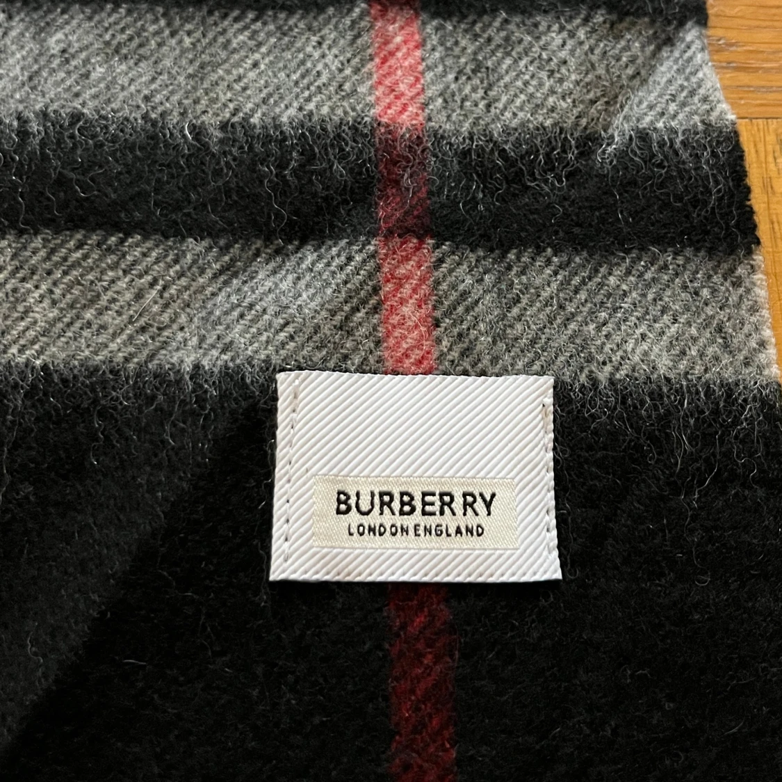 Snygg halsduk från Burberry i klassiskt rutigt mönster med svarta, gråa och röda toner. Halsduken har fransar i ändarna och är tillverkad i mjuk ull. Perfekt accessoar för att lyfta din outfit.
