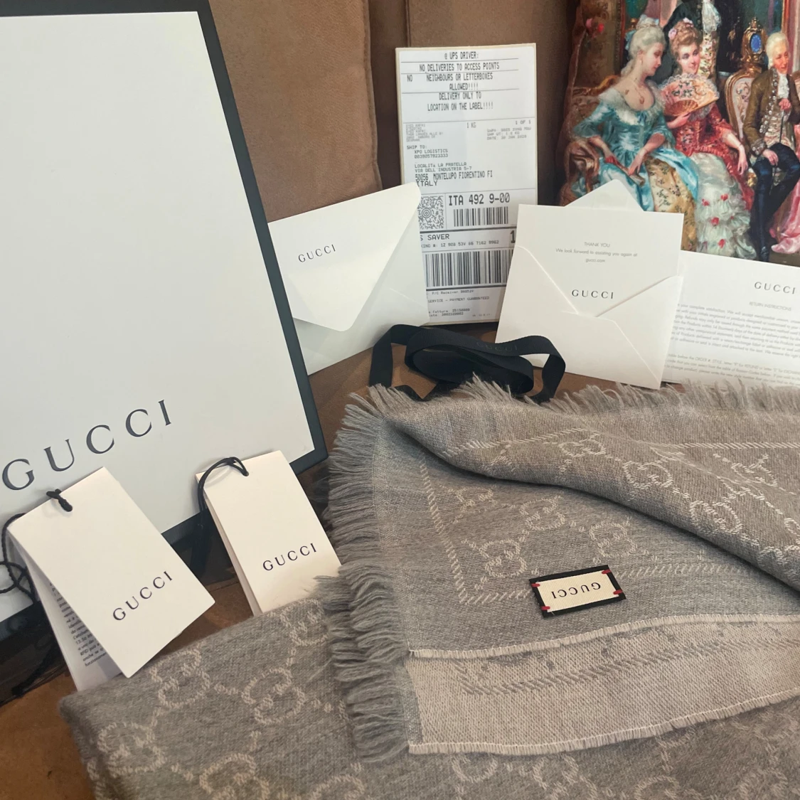 Gucci scarf, Nypris idag 6000kr. Den Kommer med allt på bilderna, kvittot kan skickas privat så hör av dig