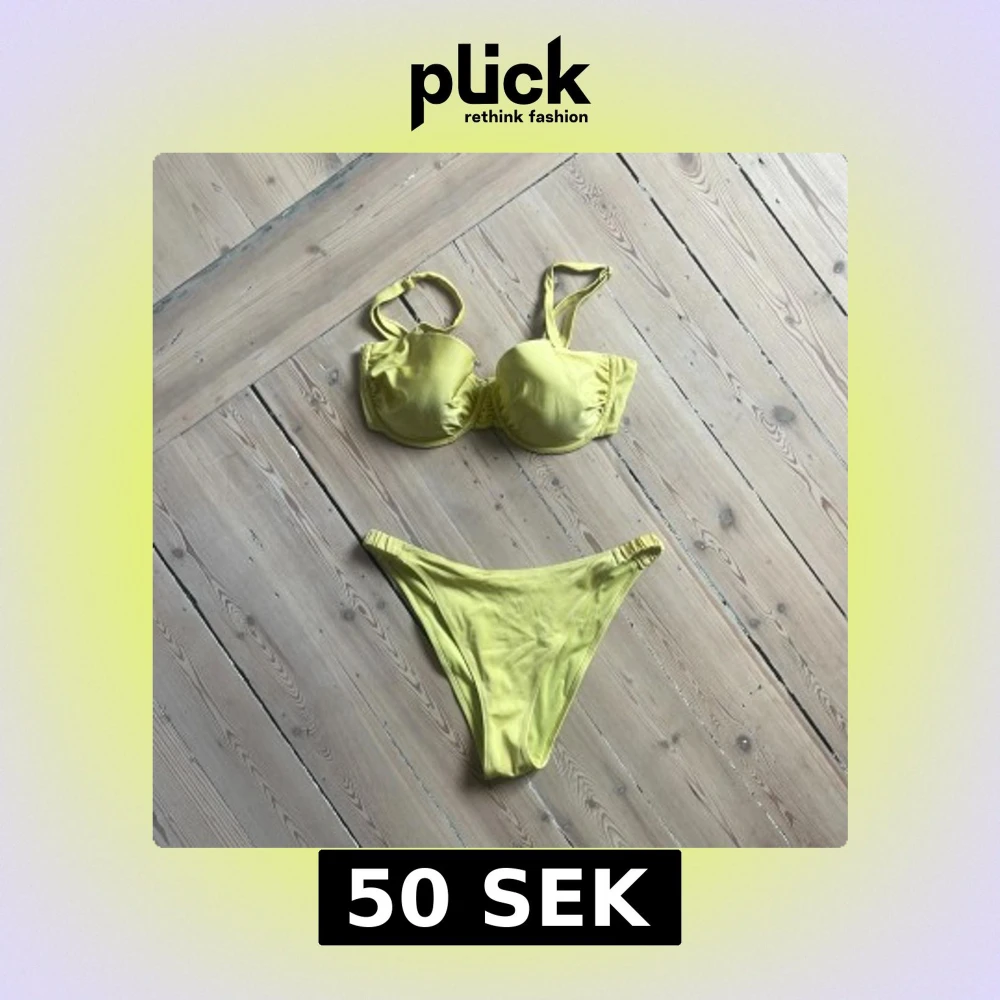 Snygg gul bikini från H&M. Underdelen är storlek M och överdelen passar en D kupa.