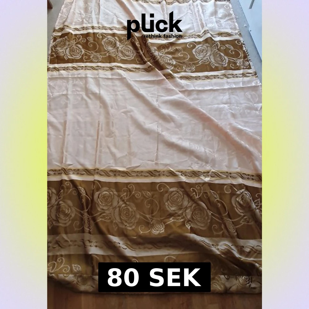 Säljer en stor vanlig gardin i beige och brunt med vackert blommönster. Gardinens kanter har en fin fransdetalj som ger en extra touch av stil. Längd: 248 cm och Bredd: 141cm. (Det är en gardin men vet inte vilken slags men den är inte så tunn)