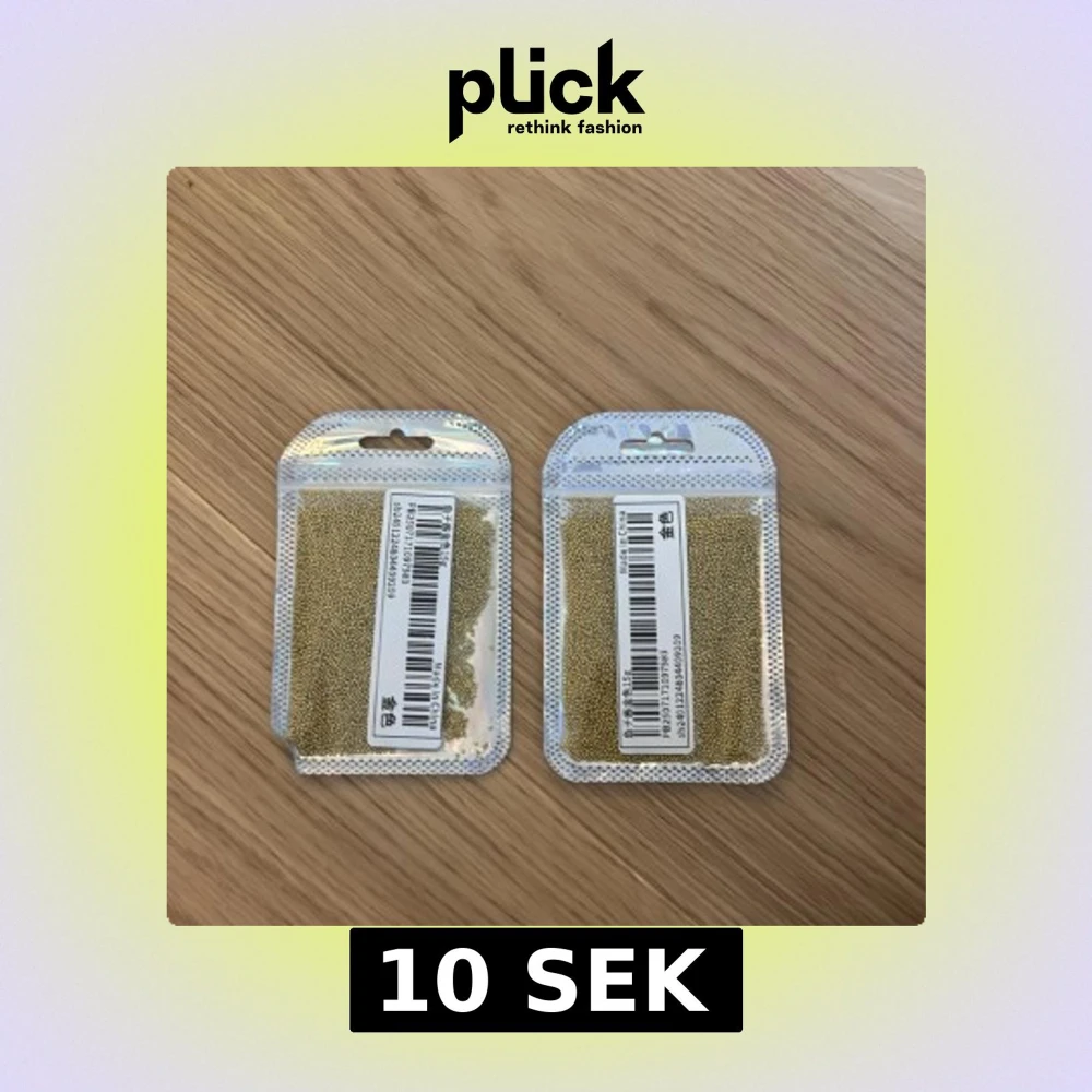 Två förpackningar med små guldiga pärlor perfekta för kreativa sminklooks eller nageldekorationer. Pärlorna kommer i återförslutningsbara silvriga påsar och är lätta att applicera för att skapa detaljerade och unika effekter. Aldrig använt!! Pris kan diskuteras!