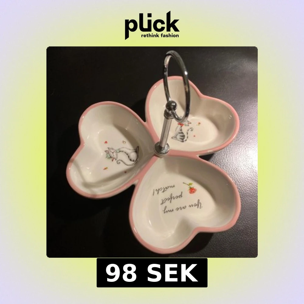 Gullig skål med rosa detaljer. Perfekt för smycken eller godis, det funkar att ha i vad som helst egentligen.