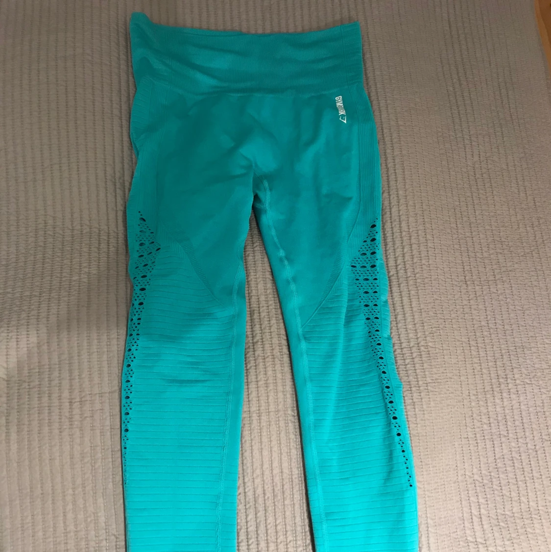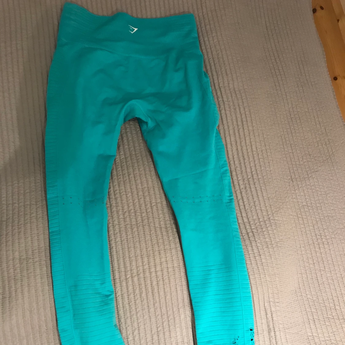 Tights från Gymshark i stl S, OANVÄNDA, därav perfekt skick. Tyvärr inte kommit till användning. Passar även M. Härlig blågrön färg. Köpta för 600 kr, säljs för 400 kr. Pris diskuterbart.