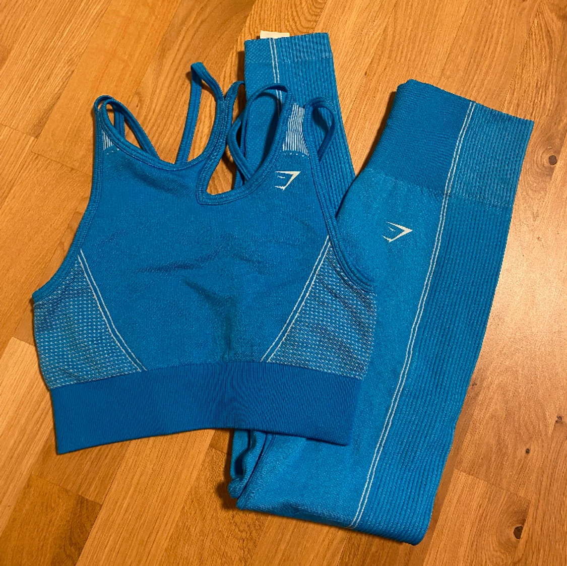 Gymshark-set i fin klarblå färg. Endast använd 2 gånger. Djur finns i hemmet🐾