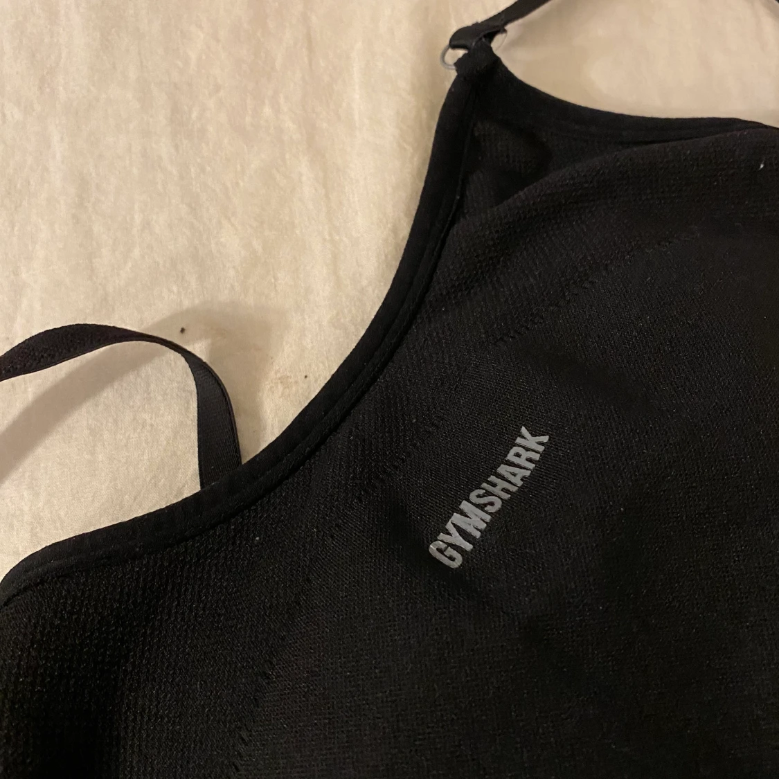 En svart sport-bh med gråa detaljer från Gymshark. Säljes pga för liten för mig