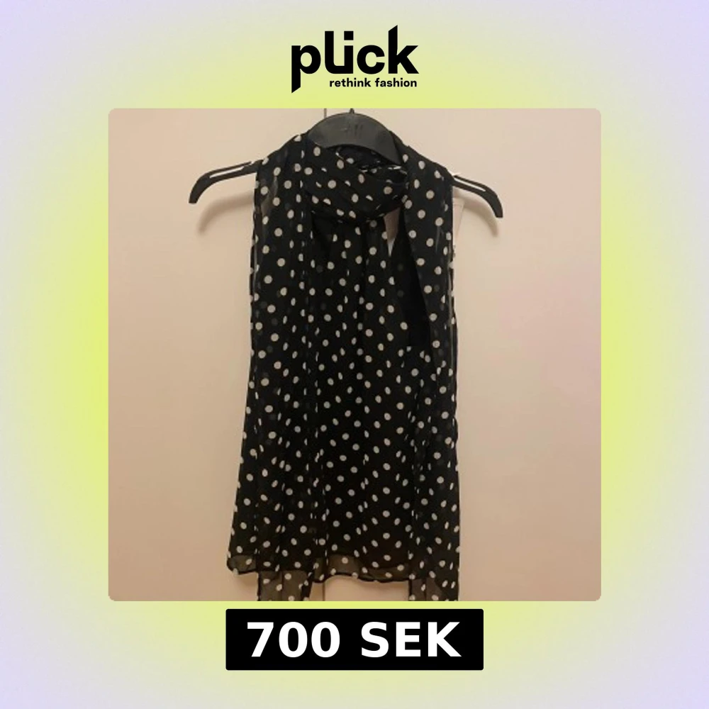 Slutsåld från h&m! Snygg svart topp med halsduk med vita prickar från H&M. Toppen är tunn och luftig, perfekt att slänga över axlarna för en cool look. Den har en klassisk rektangulär form och är gjord i ett lätt, transparent material.