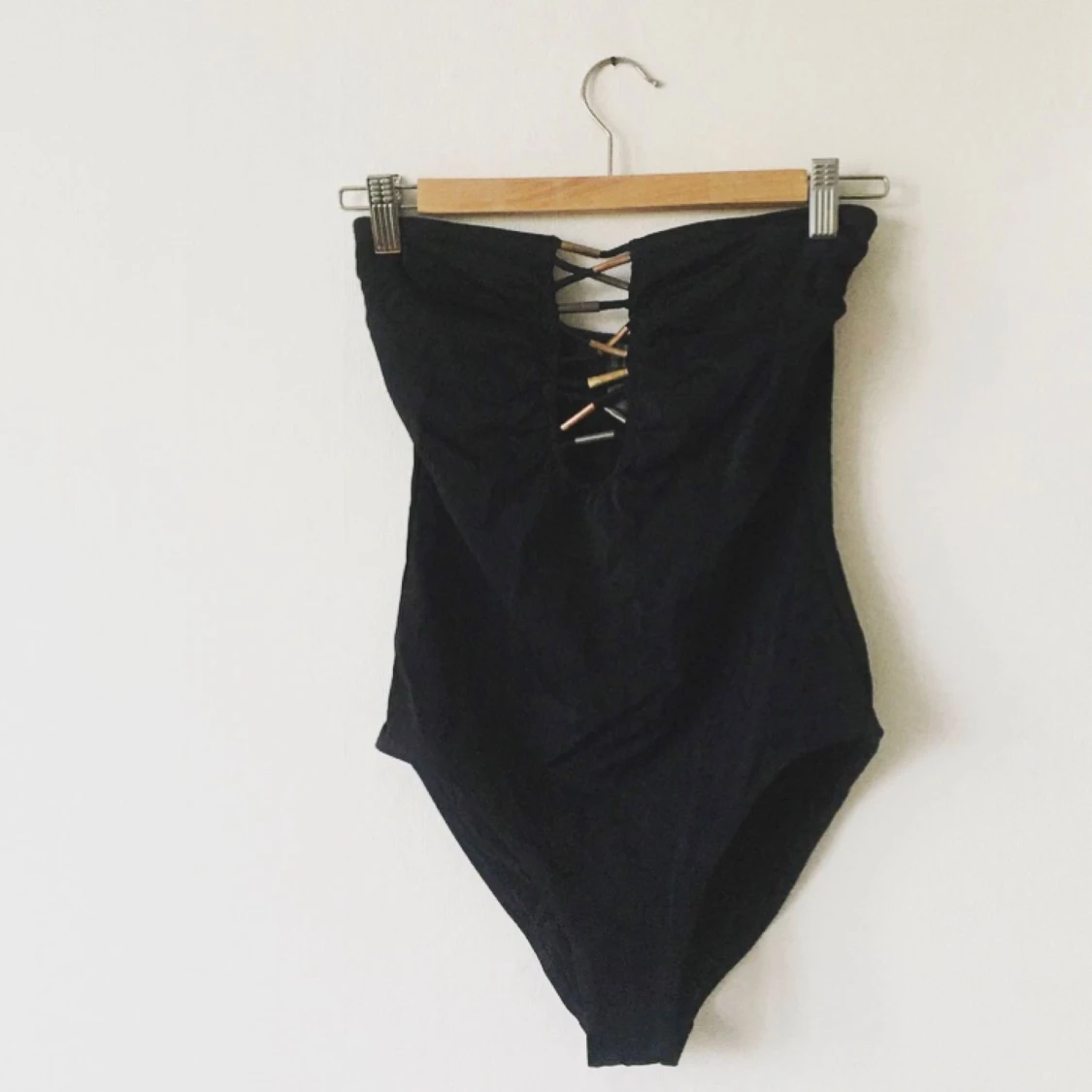 Svart baddräkt från H&M i storlek 38. Superfin att ha som body/top under byxor! I nyskick.
