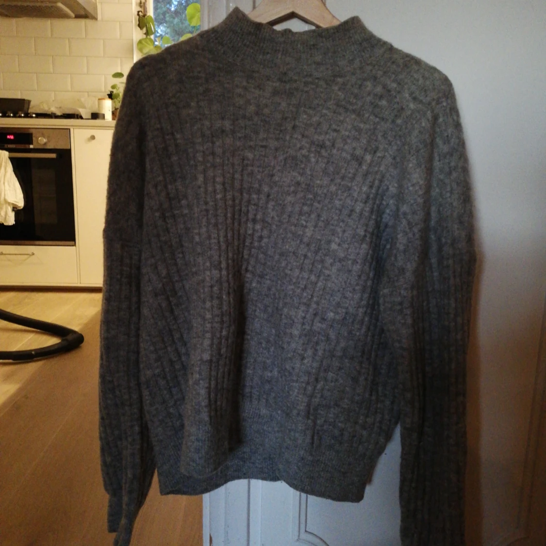 Grå tröja i mohair blend. Hämtas i Årsta
