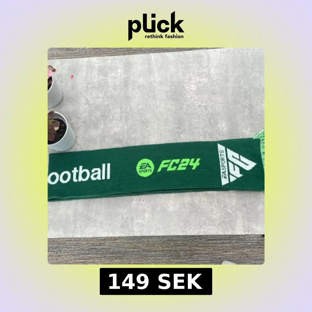 Snygg grön halsduk med texten 'total football', EA Sports FC24-logga och Lack of Guidance-mönster. Halsduken har vita och ljusgröna detaljer samt fransar i ändarna. Perfekt för dig som älskar fotboll och gaming.