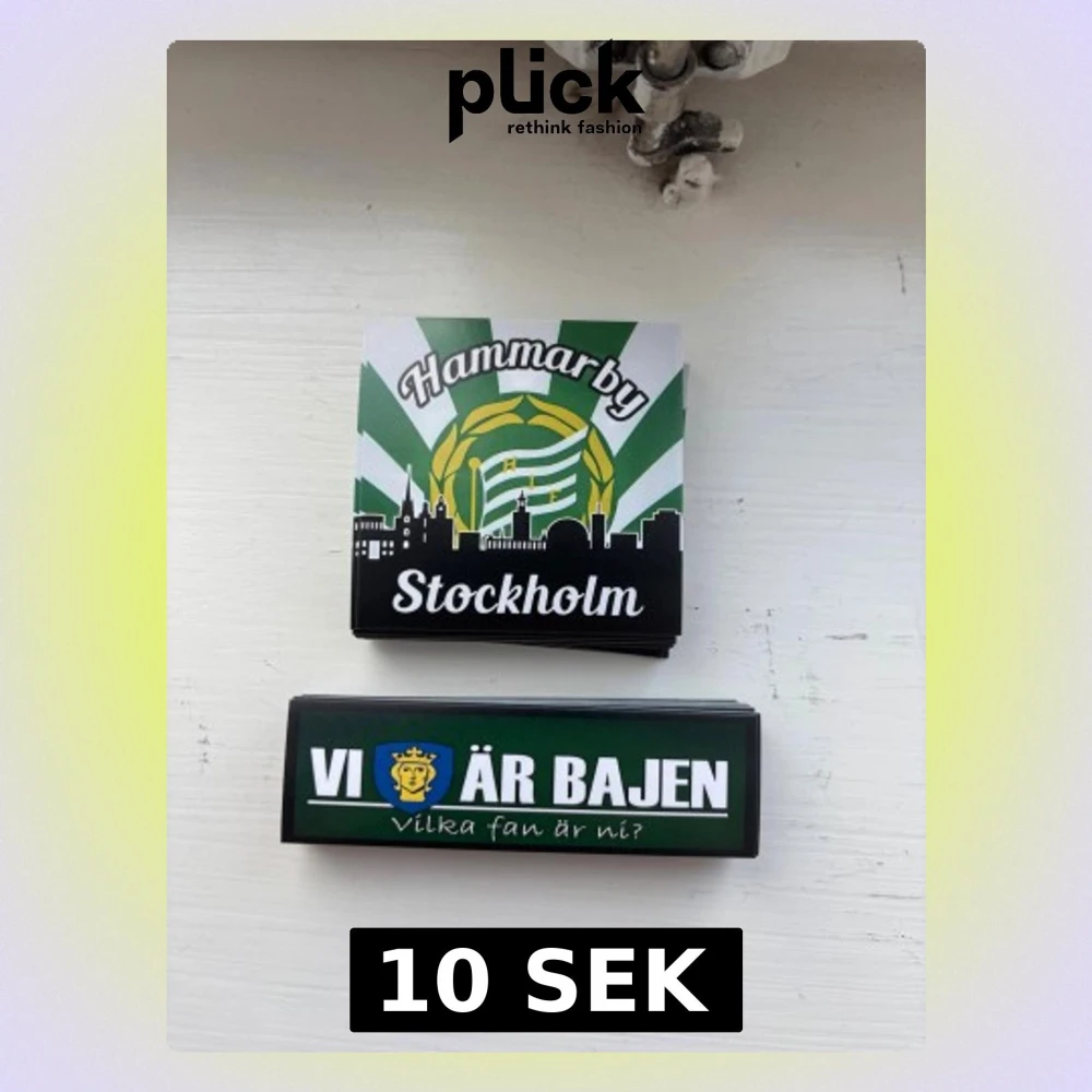 Hej! Nu säljer jag Hammarby klistermärken. Jag har 2 olika motiv. Skriv till mig för att bestämma antal. Obs! Köp inte annonsen. Vill ni ha billigare frakt, hör av er så kan jag posta dem, via Instagram.😊
