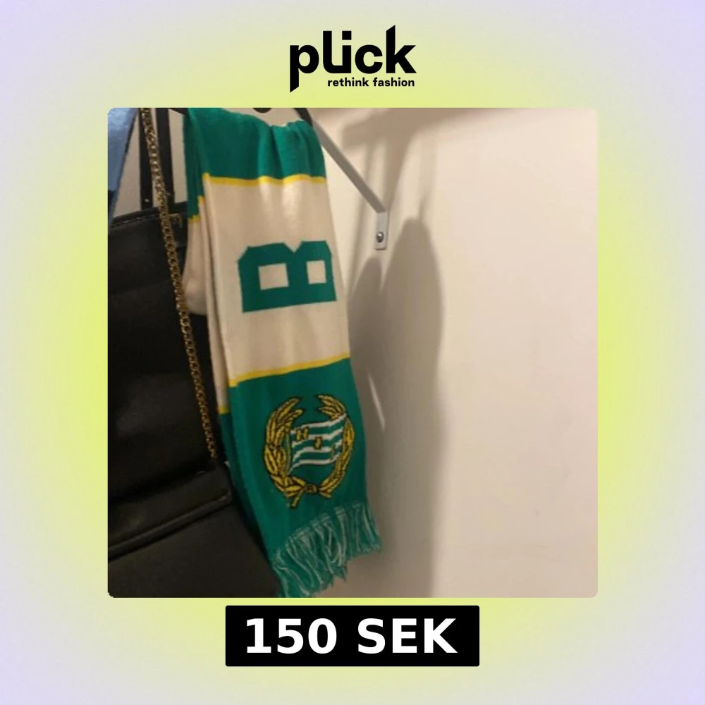 Säljer en klassisk Hammarby halsduk i grönt, vitt och gult med klubbens emblem och text. Perfekt accessoar för att visa ditt stöd på matchen. Halsduken har fransar i ändarna och är mjuk och skön att ha runt halsen.