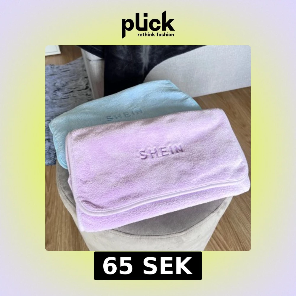 Två mjuka mindre handdukar i lila och ljusblått. Perfekt att svepa in håret efter duschen. Tillverkade i fluffig fleece med broderad logga framtill. ALDRIG ANVÄNDA! Ca 75x35cm stora 💜🩵