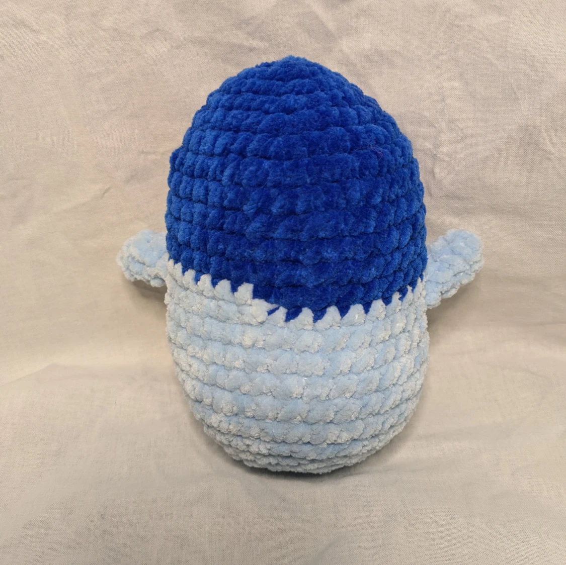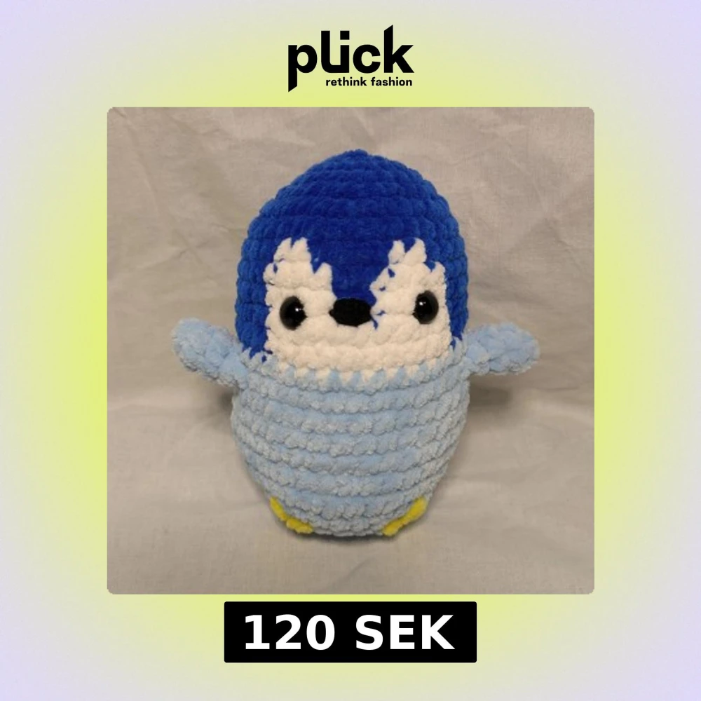 En blĂ„ pingvin som Ă€r gjord av 100% polyester garn och har sĂ€kerhetsögon. Höjd: 17 cm och har bredden 13 cmđ§