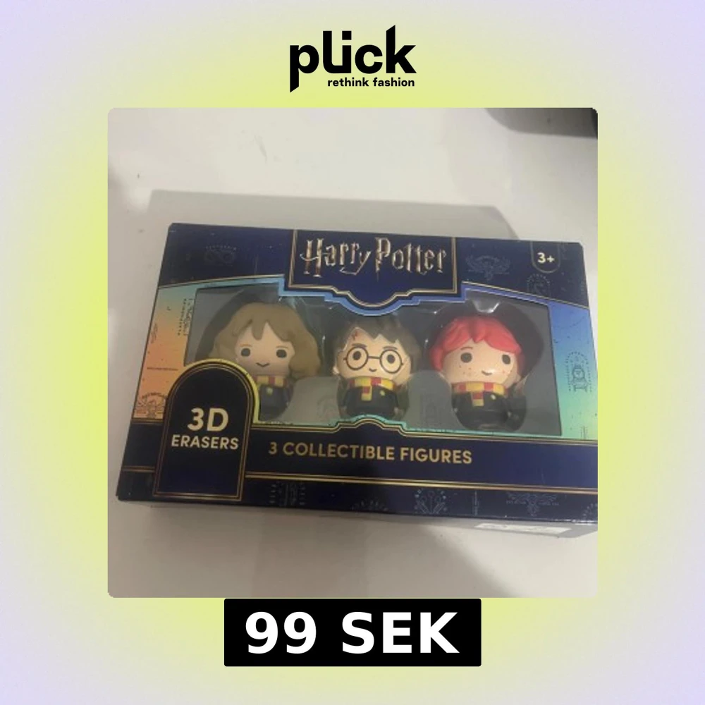 Snyggt förpackad samlarbox med 3D suddgummin föreställande Harry Potter, Hermione och Ron. Perfekt för fans och samlare. Figuren är nya i oöppnad förpackning, inga synliga skador eller slitage.