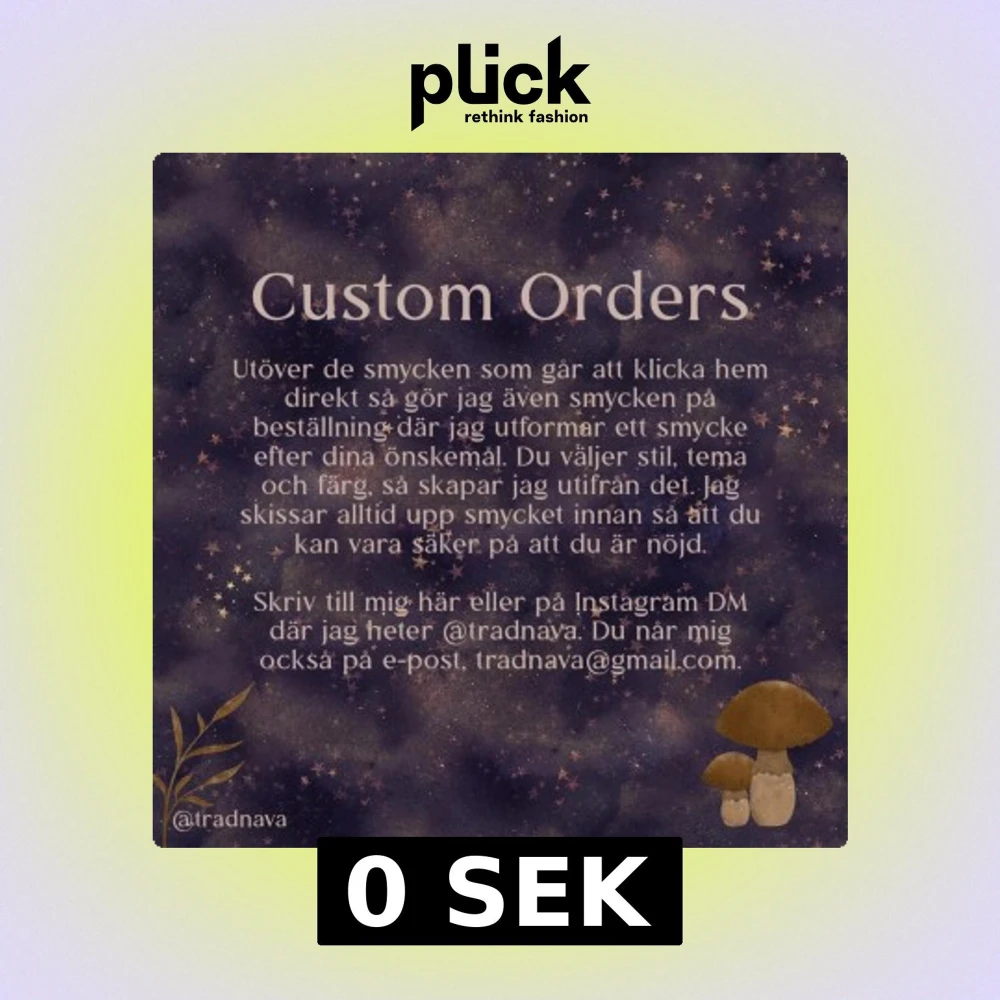 Jag tar emot custom orders – perfekt som present till både andra och dig själv när du vill ge något alldeles extra. Alla mina smycken är handgjorda av mig i noga utvalt material. Jag gör bara ett exemplar av varje smycke så du kommer definitivt att ha ett unikt smycke med personlighet! :) Min portfolio hittar du via linktr.ee/tradnava där även annan information finns eller direkt på vsco.com/tradnava🤍