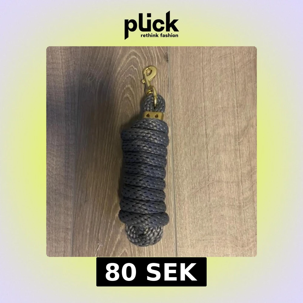 Ett grått grimskaft som aldrig har använts och en longeringslina som också aldrig har använts antingen en av dem för 50 eller båda för 80