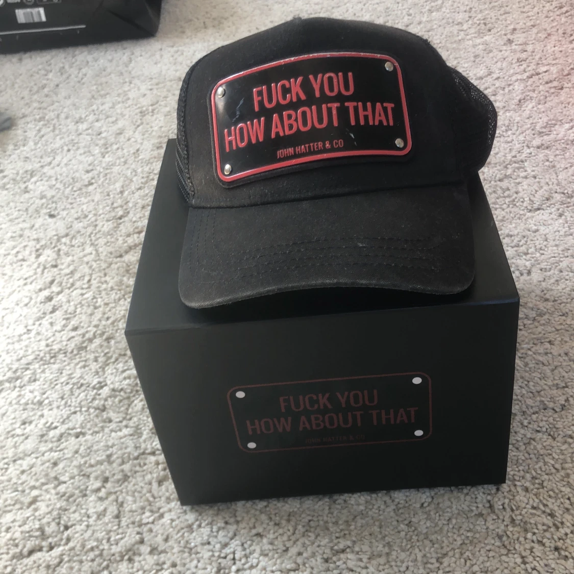 Fuck you how about that keps av John hatter. Den e lite sliten på brickan men annars e den helt ny. Den e köpt på John Hatters hemsida för ca 1000.Priset kan diskuteras